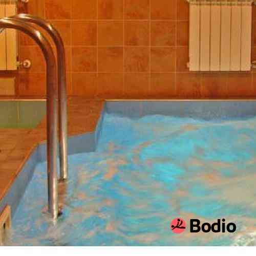 русская баня на дровах с гидромассажным бассейном, а также купелью с ледяной водой;
