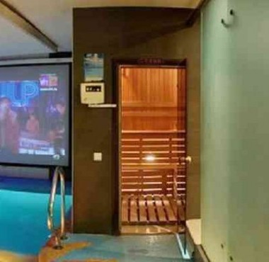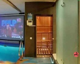 Большой бассейн с противотоком, гидропушкой и подогревом поможет освежиться, но не переохладиться и доставит удовольствие банным гурманам и любителям контрастных процедур. Плазменная панель над бассейном позволит не отрываться от веселья даже во время процедур.