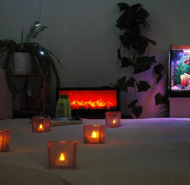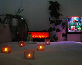 Для того, чтобы сделать процесс массажа ещё более комфортным, во время него, будет играть негромкая, приятная и расслабляющая музыка. Для создания уютной атмосферы, в помещении будет полумрак, который будет таинственно освещаться искусственным камином, аквариумом, а так же мерцанием огоньков гирлянд и свечей.