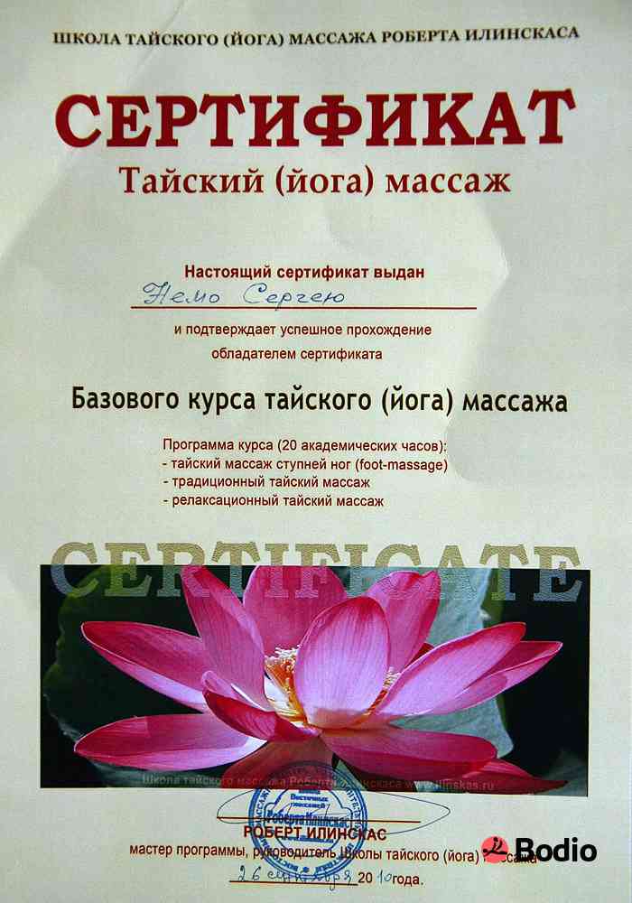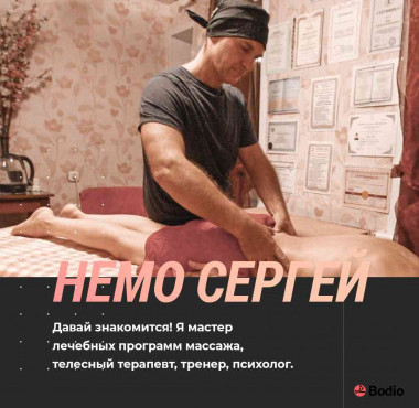 Делаю качественный и душевный массаж мужчинам и женщинам с детальной проработкой проблемных зон. Владею десятками классических и специальных техник массажа, в русских, европейских и восточных традициях. Использую приемы тайского, гавайского (ломи-ломи), испанского массажа, волновых техник (холистический палсинг), работы предплечьями, телесную психотерапию и безопасные приемы мануальной терапии. Снятие длительно накопившегося психологического и мышечного стресса за один сеанс! Сотни отзывов от клиентов предоставлю по запросу. Есть собственные стили массажа для женщин и семейных пар, с незабываемым эффектом и ощущениями.В лечебном плане: юмейхо-терапия (сертифицированный юмейхо-терапевт), сегментарно-рефлекторный массаж, кинезио-диагностика, висцеральный массаж по Огулову, коррекция сколиозов, эффективная помощь при остеохондрозе, невропатиях, болевых синдромах. Постинсультная и послеоперационная реабилитация, ЛФК, эффективная помощь при ДЦП у детей и взрослых (опыт работы в специализированном центре).