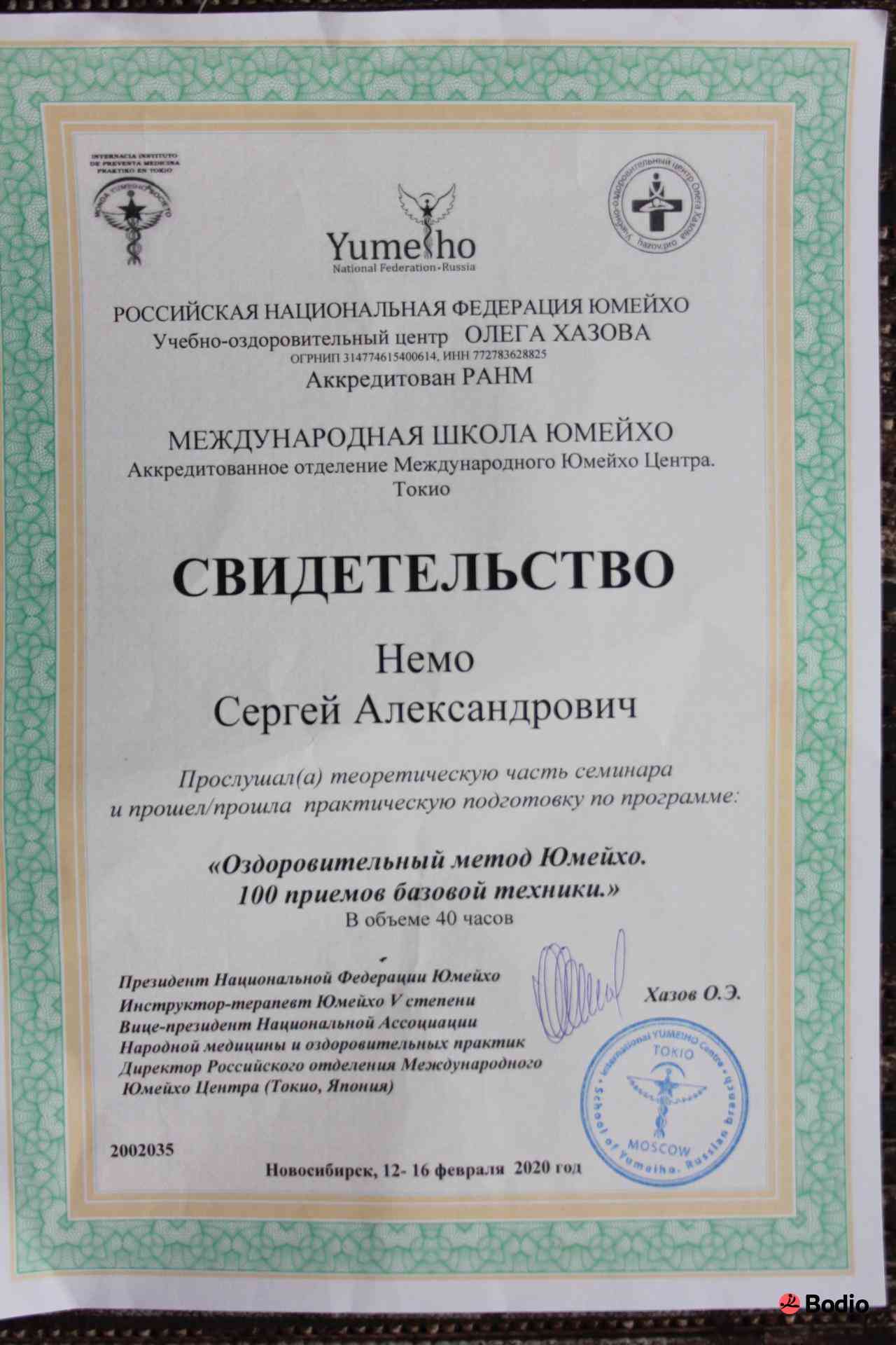 - юмейхо-терапия (сертификат)